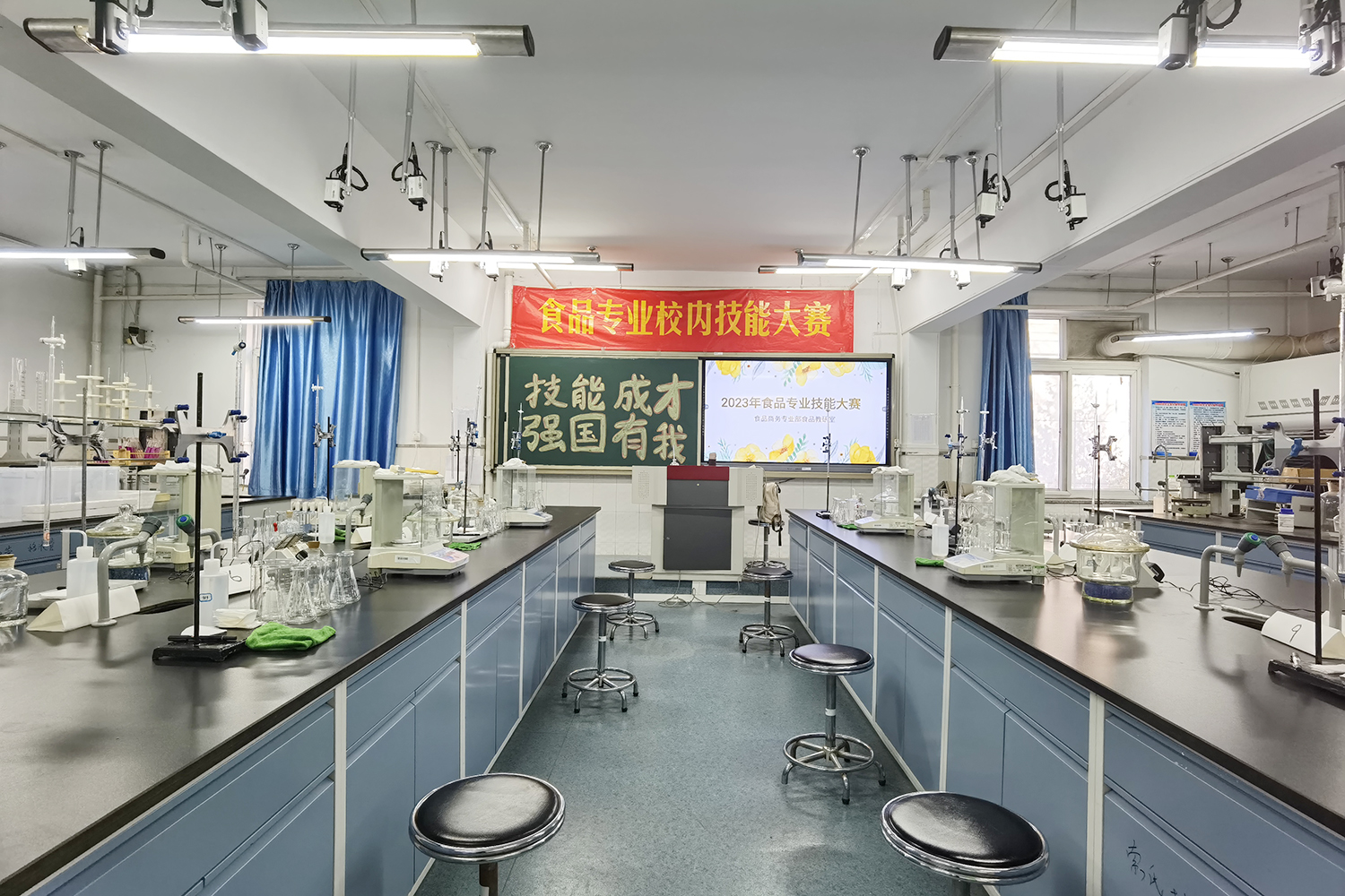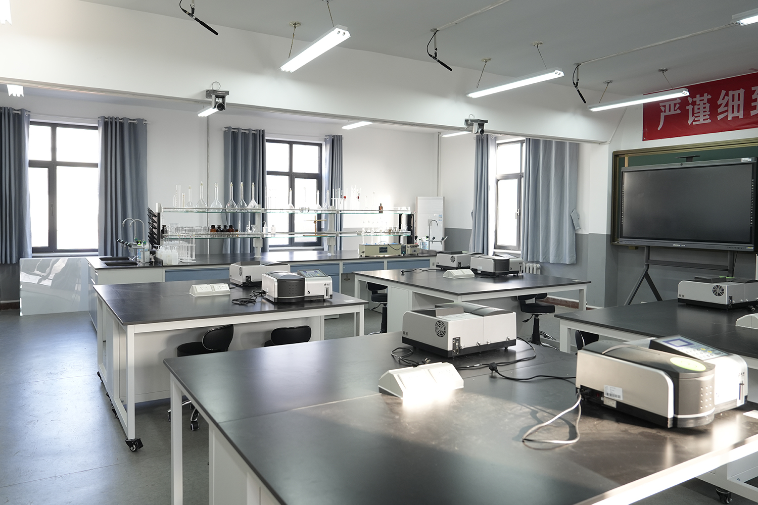 产品质量监督检验专业先后建设食品理化实训室2间、食品微生物实训室2间、食品生物技术实训室1间、食品感官实训室1间,焙烤食品加工实训室1间,智慧教室1间,杨银喜大师传统酱菜技艺工作室1间,仪器分析室1间,可以为学生进行食品中理化指标、微生物指标、感官指标、营养成分等内容的检测,为校企合作、科研项目提供场所。