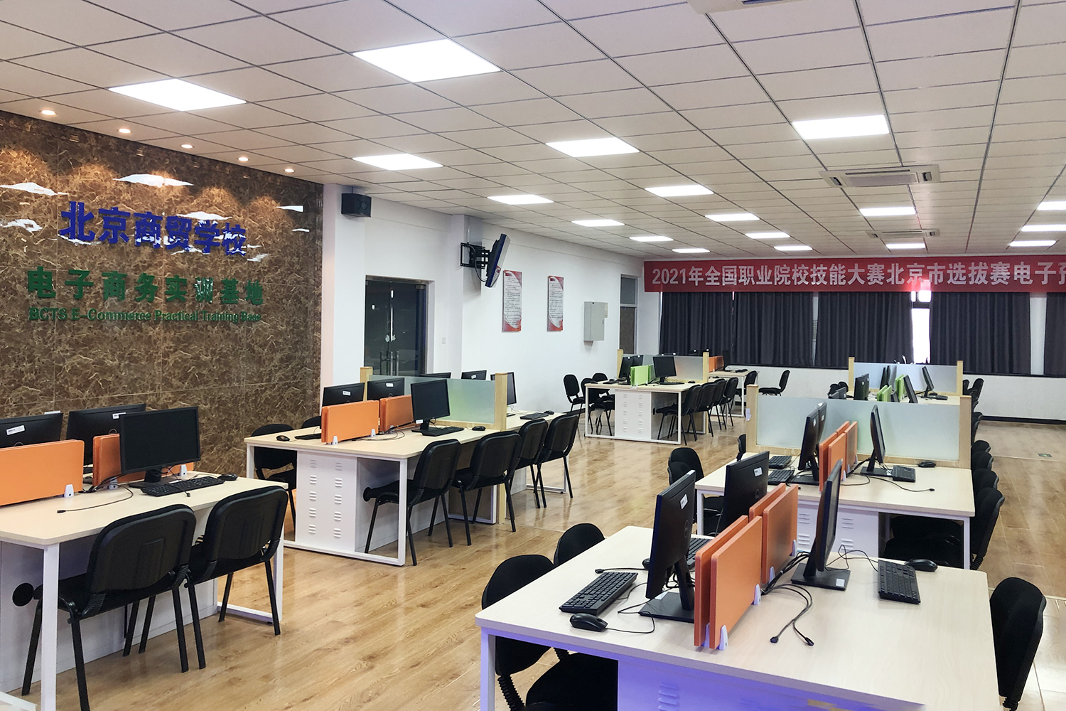 电子商务专业设有国内一流实训基地,配备最新的教学软件与设施设备,可充分满足教师全程教学和学生实际操作的需要。本实训基地还实现了服务于北京市电子商务专业发展需要,2011—2021年,连续十一年承办北京市中等职业学校电子商务技能大赛和第四届“丝路工匠”国际技能大赛直播电商比赛。电子商务专业拥有电子商务综合实训基地、电子商务O2O实训基地、电子商务直播间、电子商务创新创业实训基地。