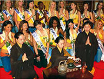 为世界小姐进行茶艺表演