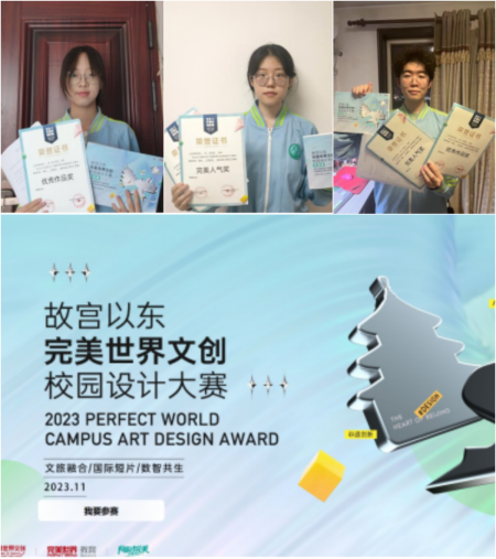 2023年11月-2024年6月,由北京市东城区文化和旅游局、完美世界控股集团主办,北京市东城区文化旅游推广中心、完美世界文创校园设计大赛组委会承办的第四届“故宫以东”完美世界文创校园设计大赛成功举办。北京商贸学校传媒服务专业动漫数媒教研室教师带领动漫与游戏制作专业和数字媒体技术应用专业同学参赛,经过激烈角逐,2021级动漫2班李祎焓、赵佳蕊,2022级动漫1班淳于常宝,2023级动漫1班王尚共四名同学获得优秀作品奖,李祎焓、赵佳蕊、王尚同学获得完美人气奖,传媒服务专业部教师张少帅同志荣获优秀指导教师奖。