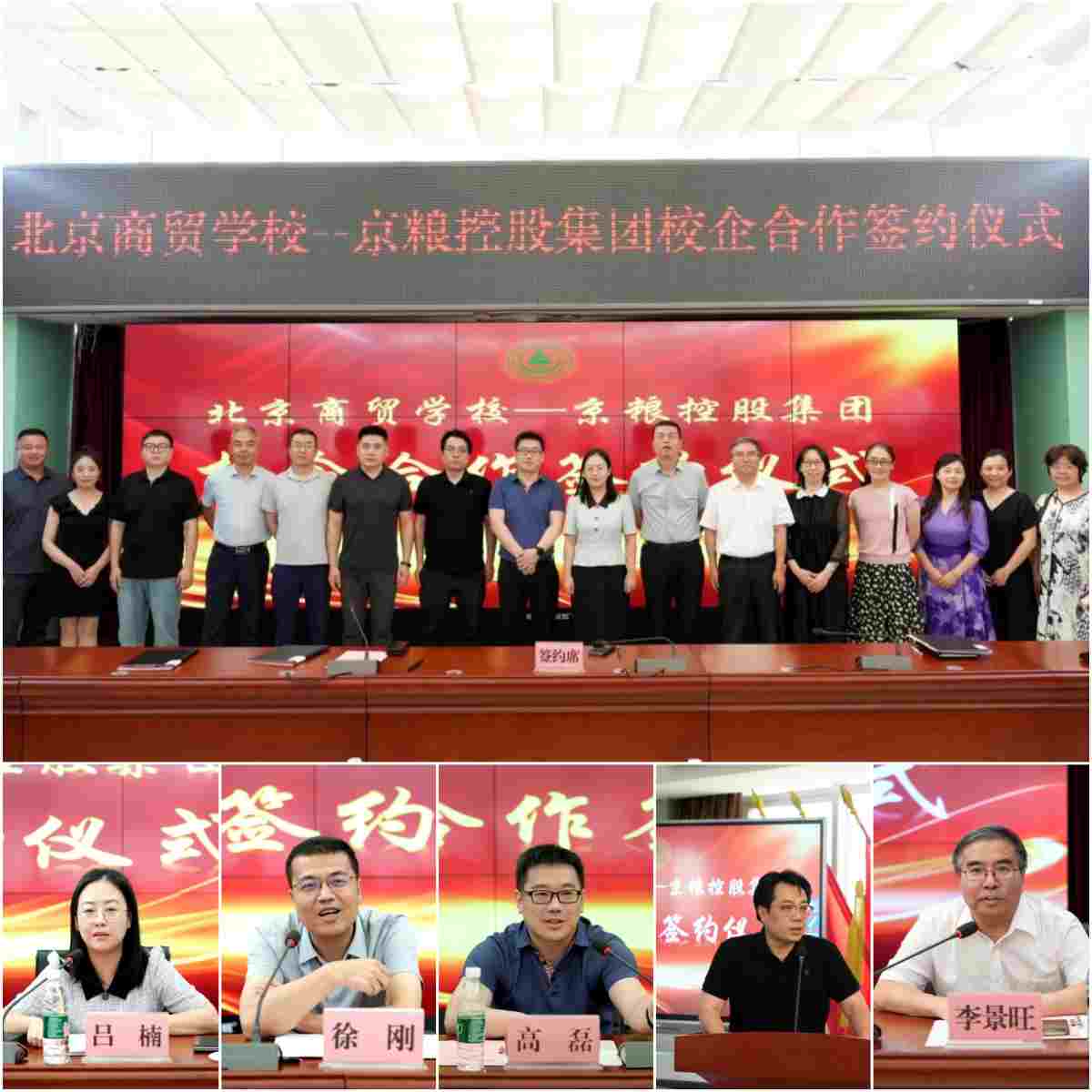 6月18日,北京商贸学校与京粮控股集团合作签约仪式成功举行,学校党委书记吕楠同志,党委副书记、校长徐刚同志,副校长李景旺同志,京粮控股集团党委副书记、总经理高磊同志,中联集团教育科技有限公司轮值总裁李昕同志以及企业相关人员、学校师生参加。签约仪式由李景旺同志主持。