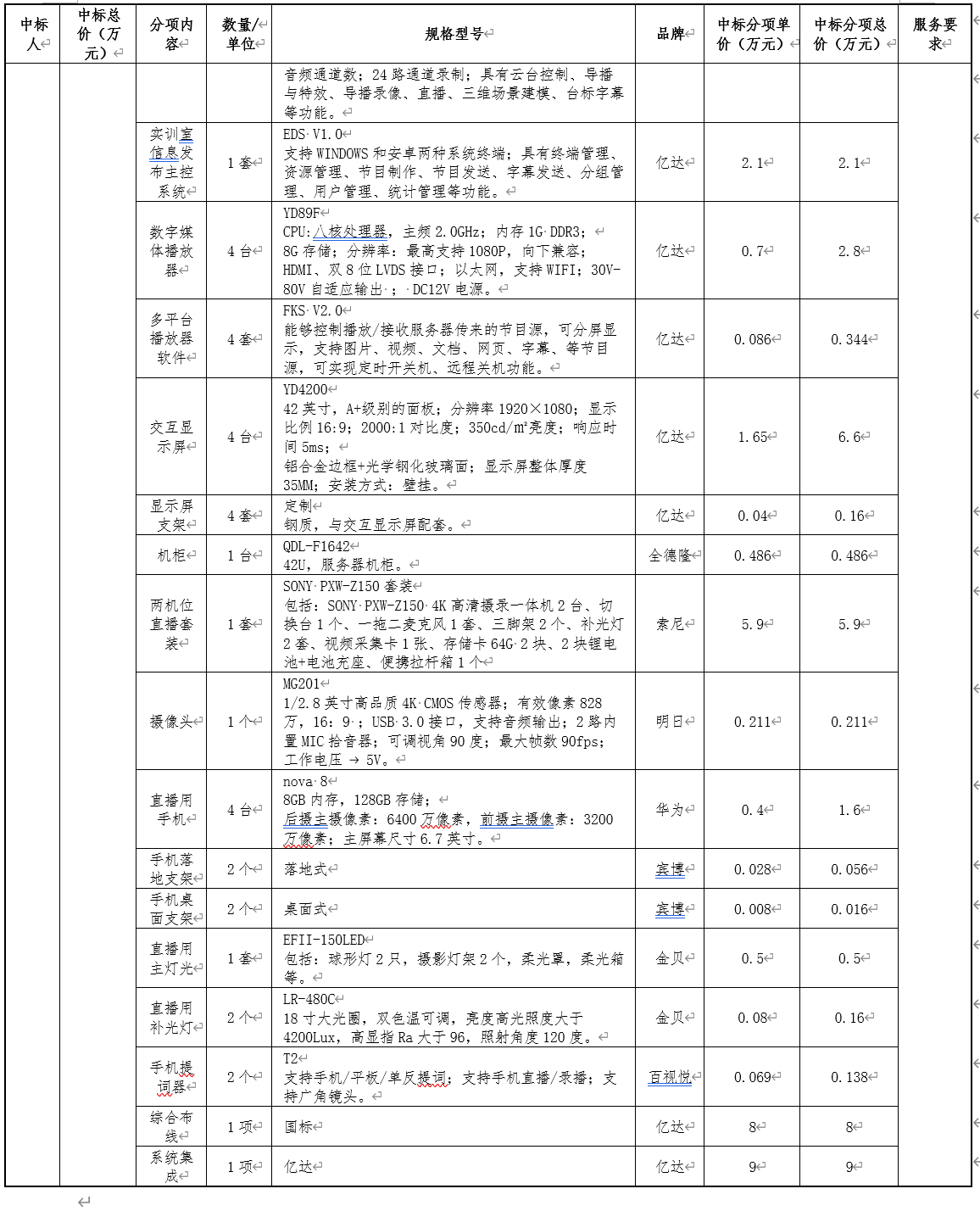 (4)中标人名称/中标金额(人民币)/规格型号/品牌(详见附表)
