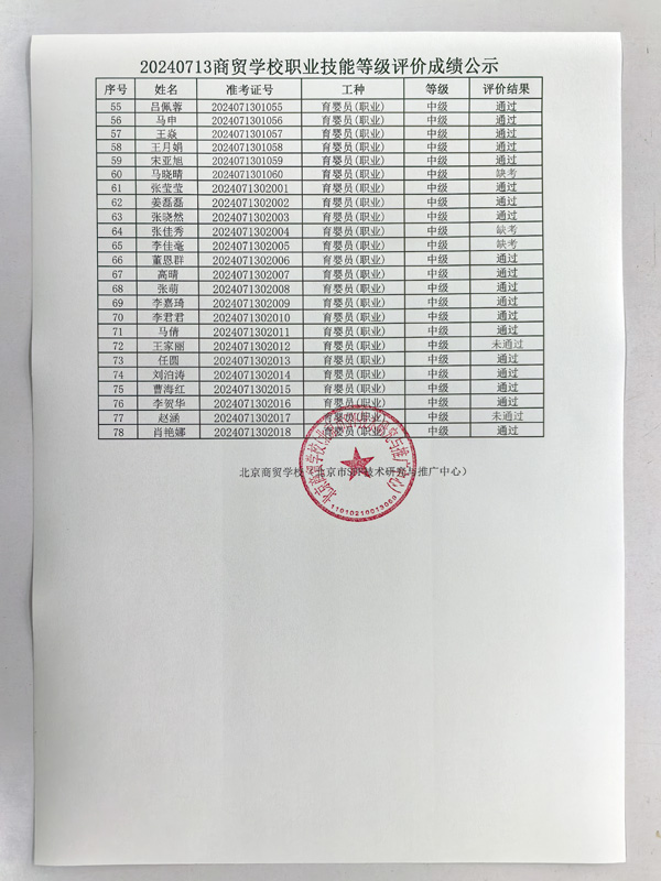 20240713商贸学校职业技能等级评价成绩公示