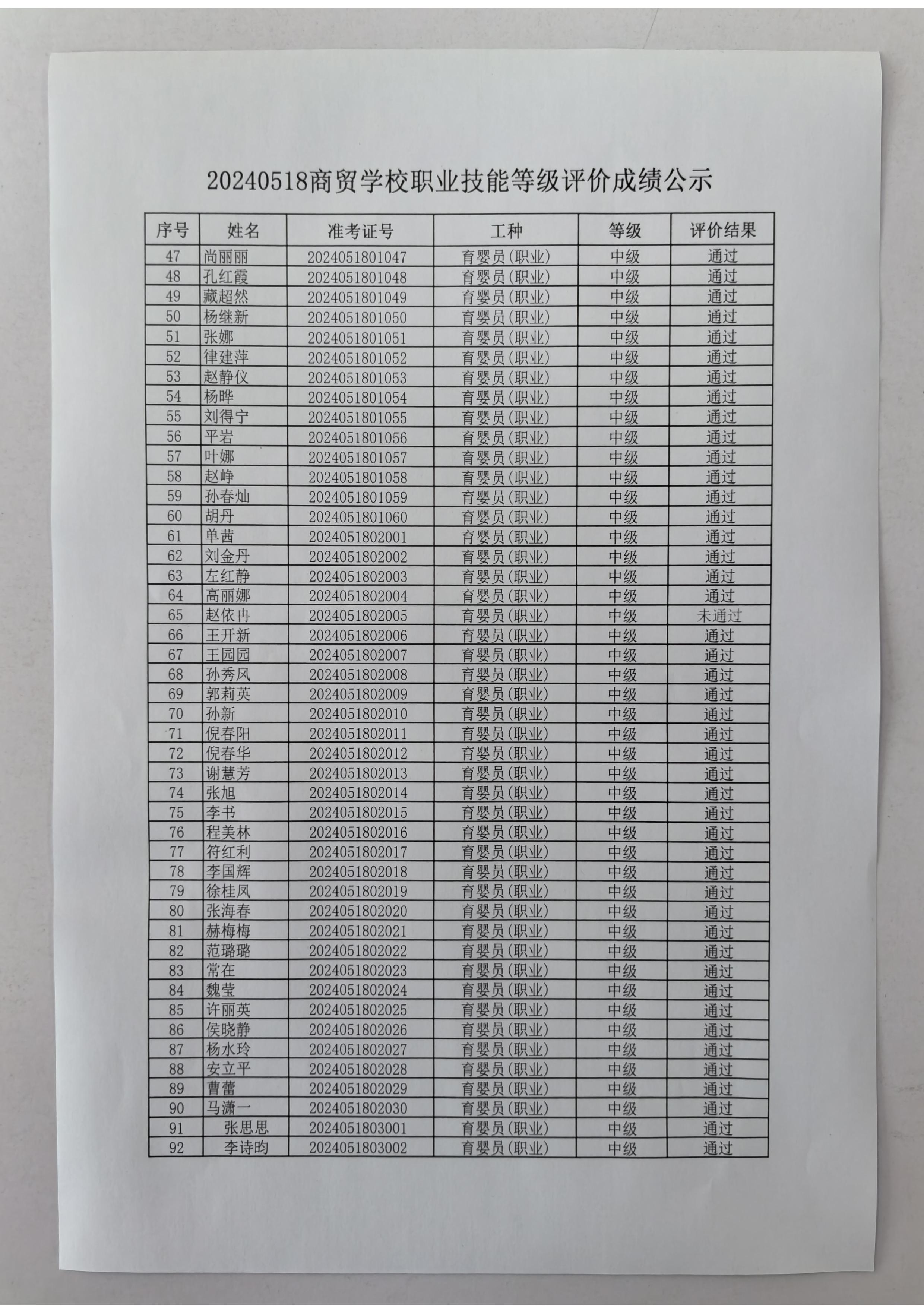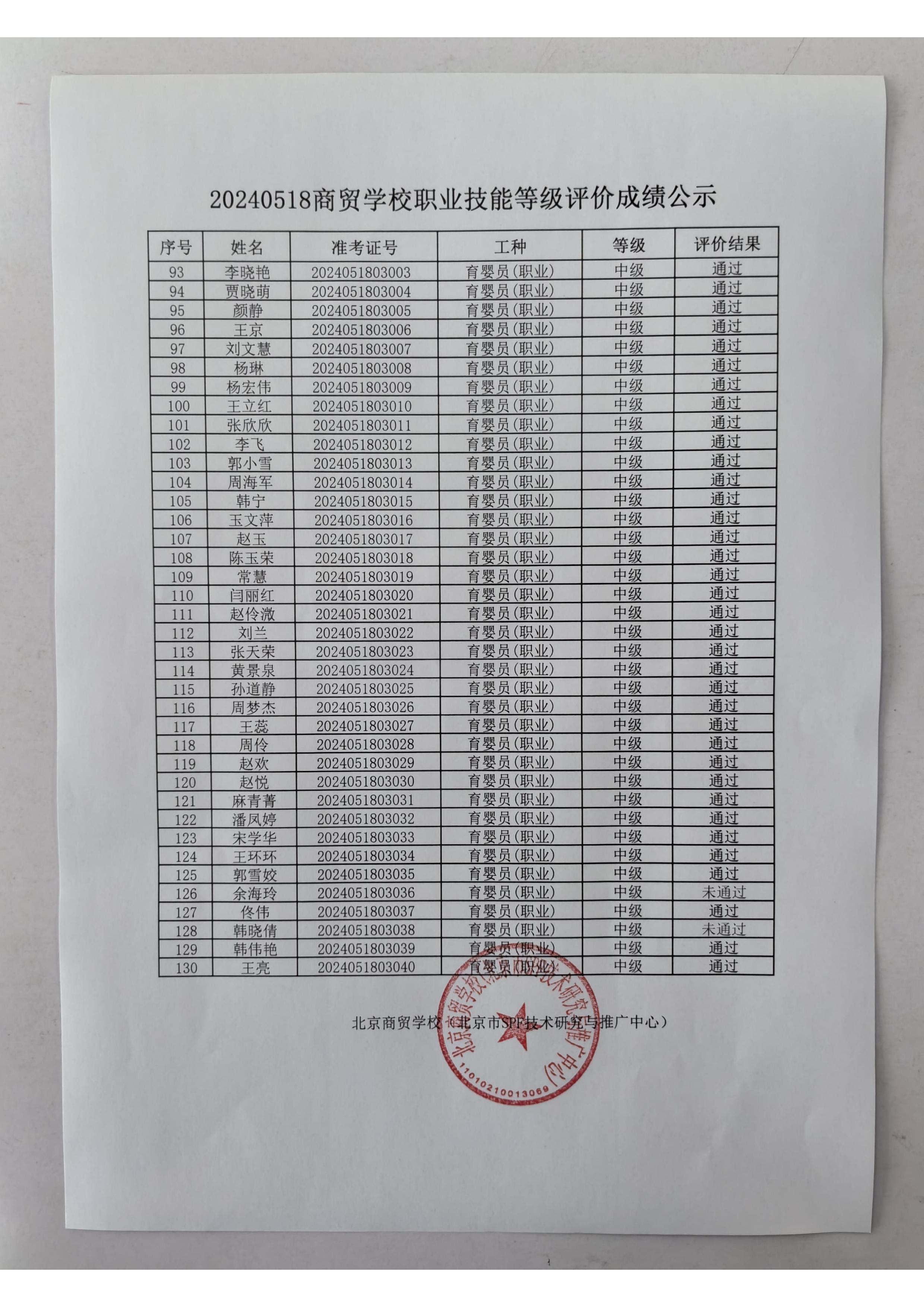 20240518商贸学校职业技能等级评价成绩公示