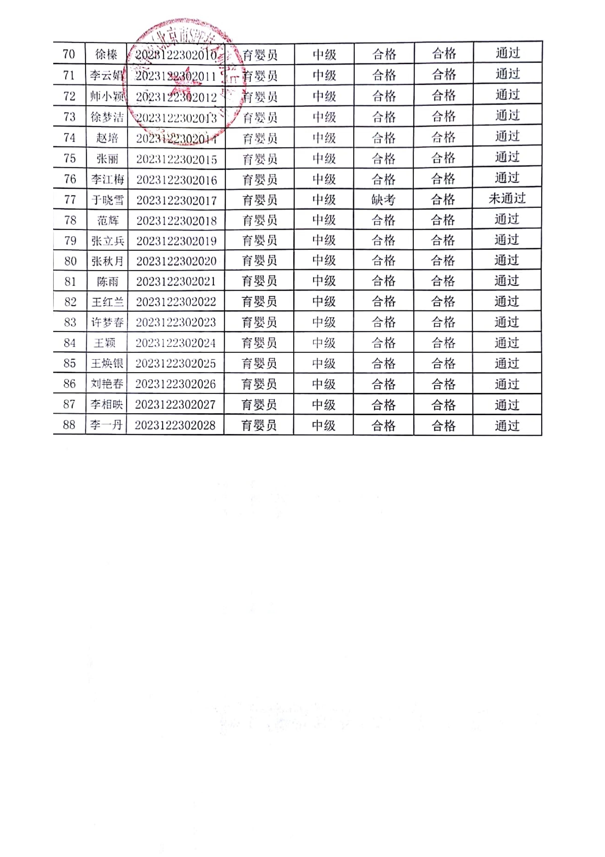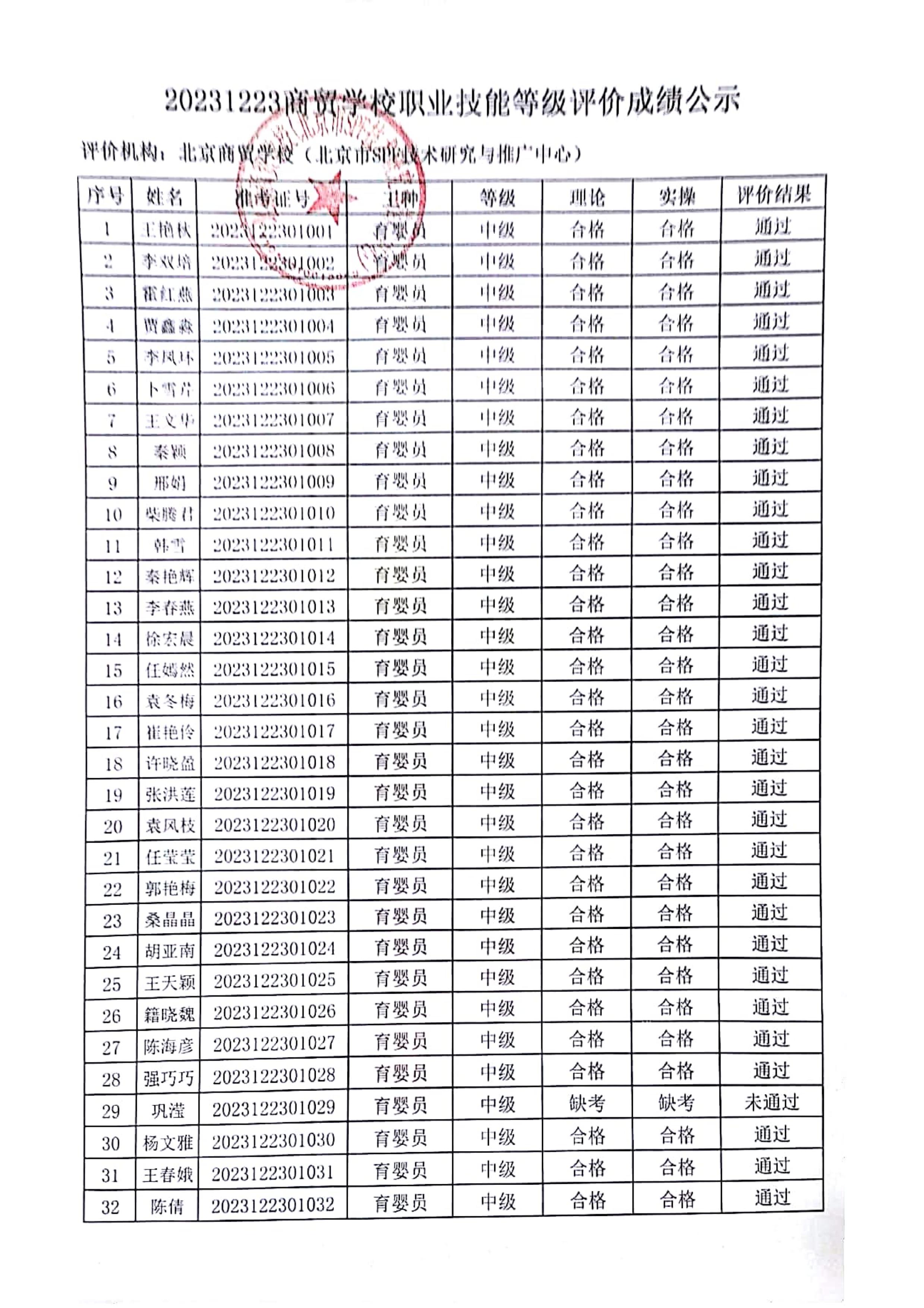 20231223商贸学校职业技能等级评价成绩公示