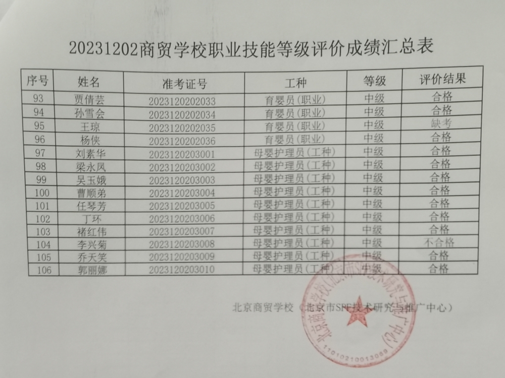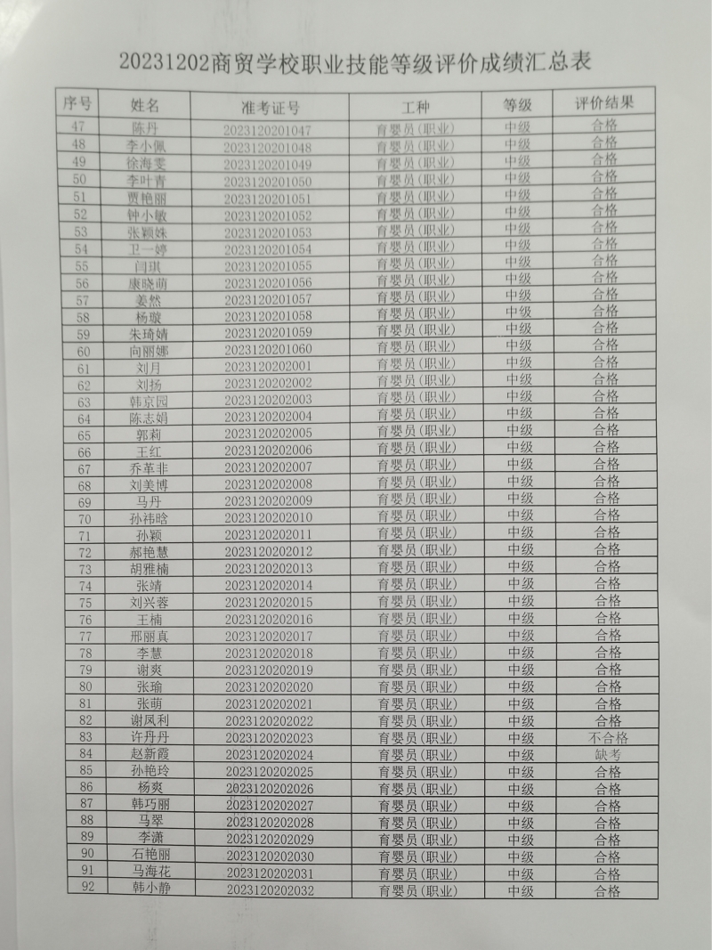 20231202商贸学校职业技能等级评价成绩汇总表