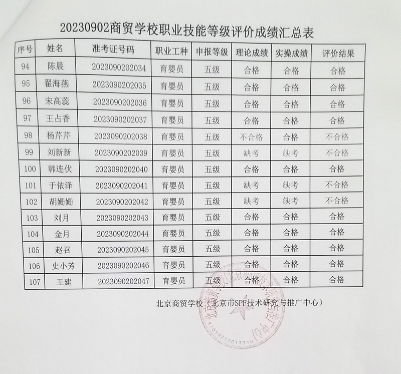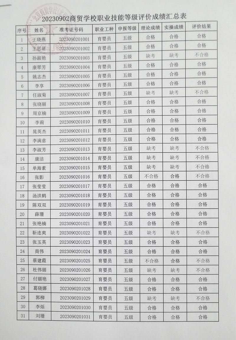 20230902商贸学校职业技能等级评价成绩汇总表