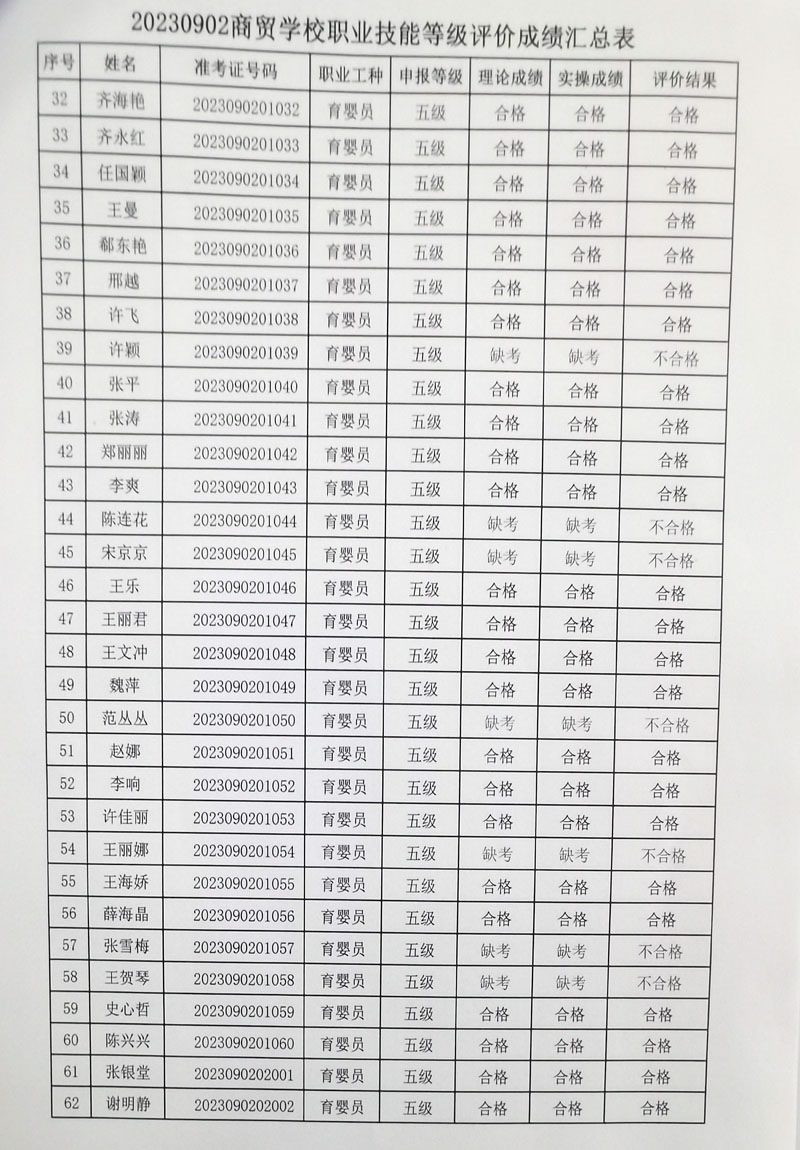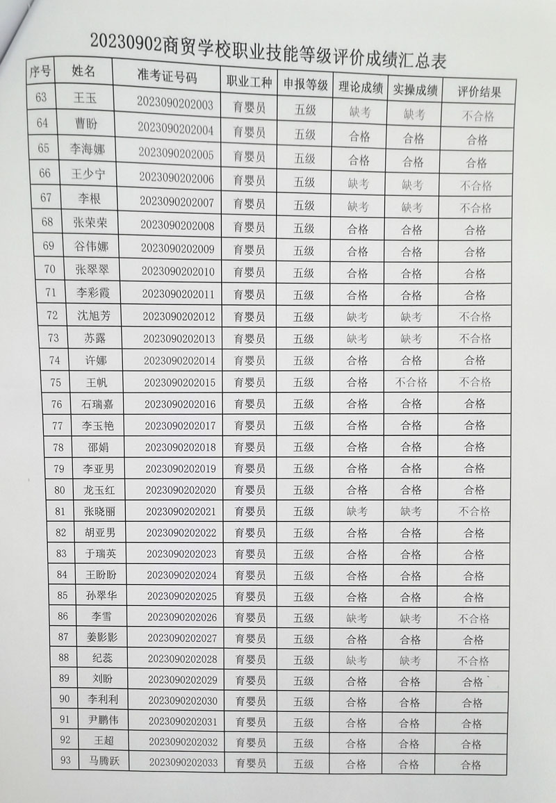 20230916商贸学校职业技能等级评价成绩汇总表