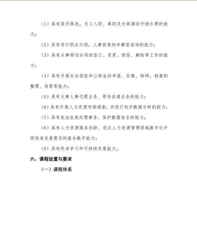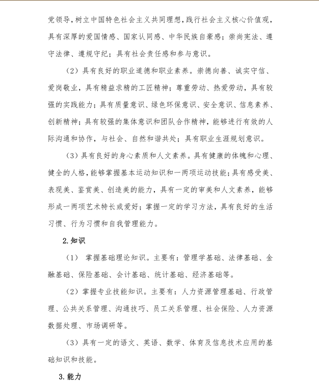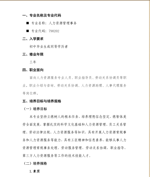 2019级人力资源管理事务专业人才培养方案