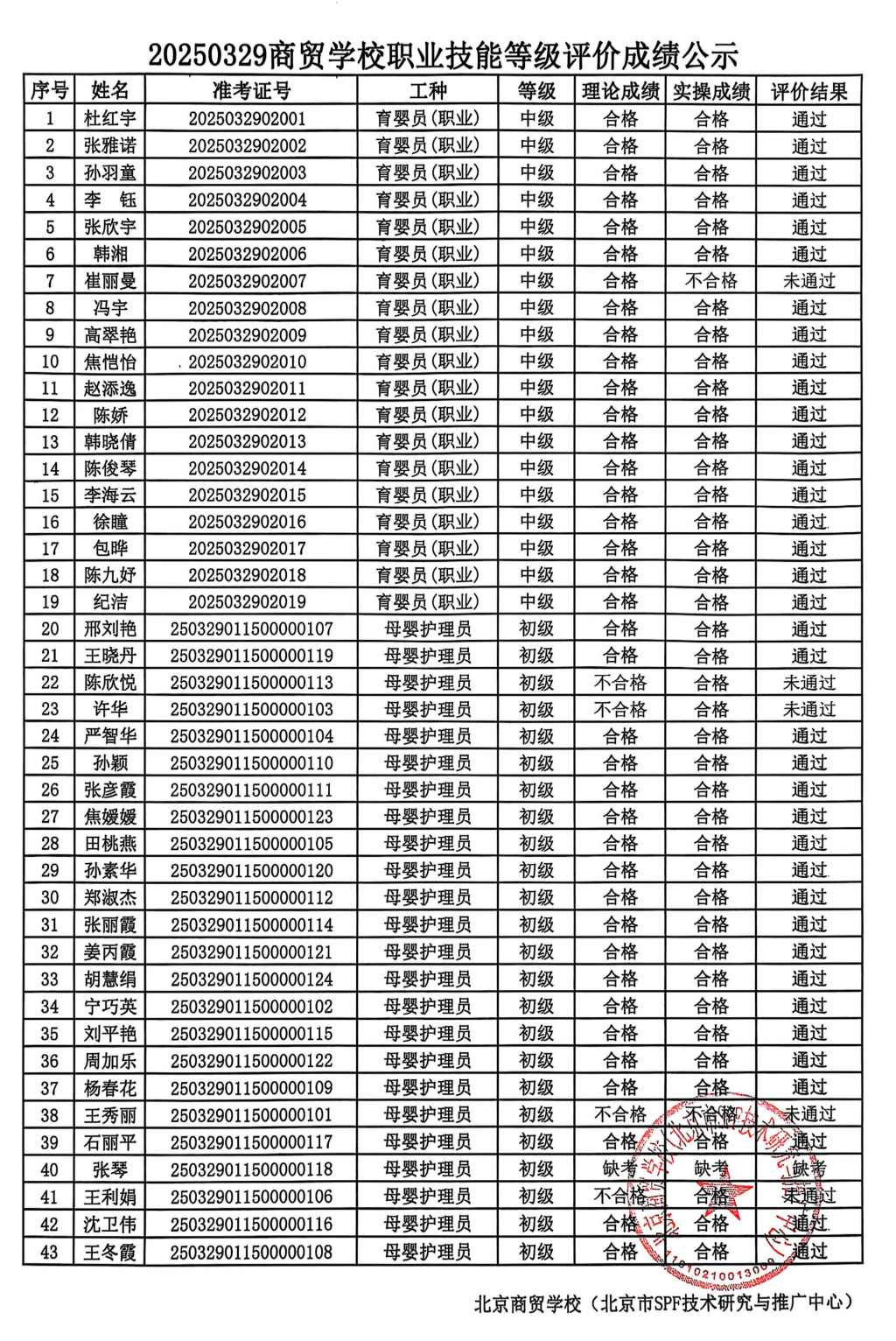 20250412商贸学校职业技能等级评价成绩公示