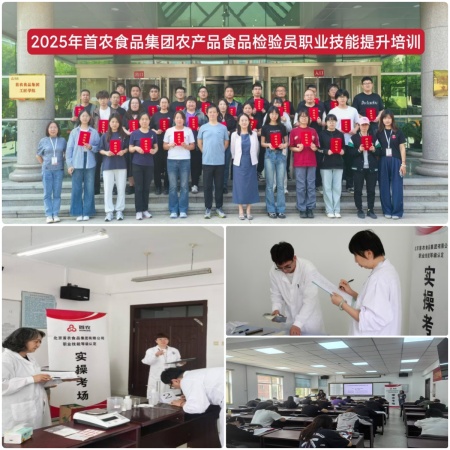 为深入贯彻落实首农食品集团人才发展战略,提升首都食品安全保障能力,近日,由集团党委组织人事部主办、北京商贸学校承办的2025年农产品食品检验员(初级)职业技能培训与认定工作圆满收官。