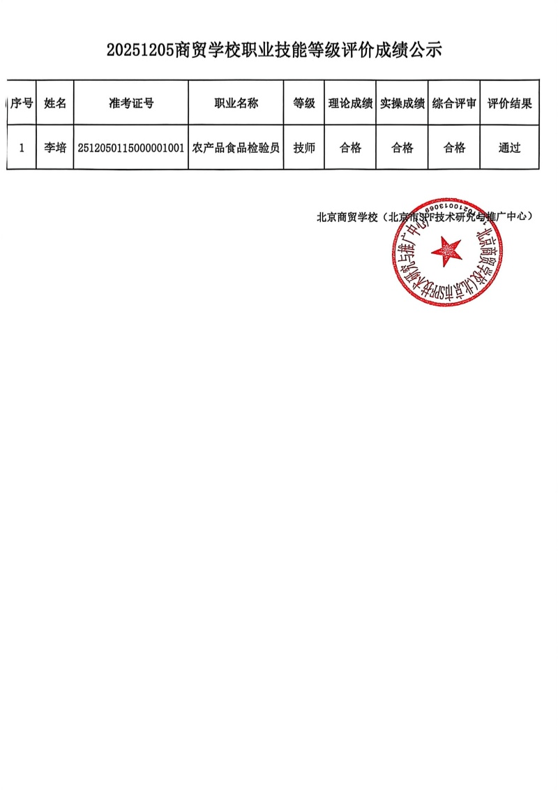 20251205商贸学校职业技能等级评价成绩公示