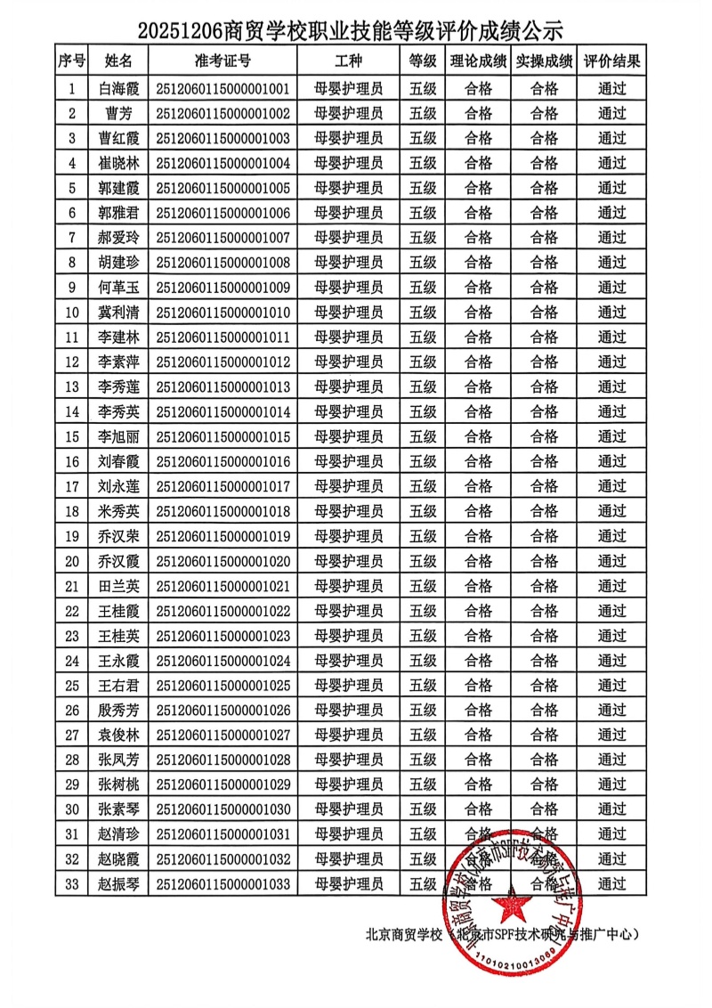 20251205商贸学校职业技能等级评价成绩公示