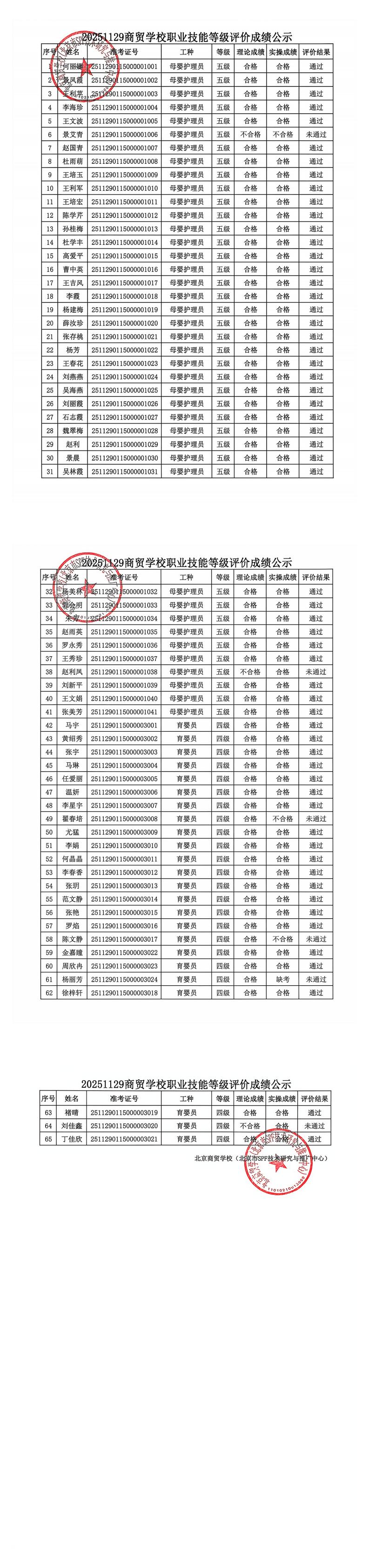 20251129商贸学校职业技能等级评价成绩公示