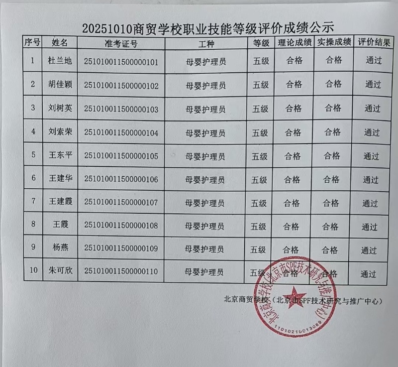 20251010商贸学校职业技能等级评价成绩公示