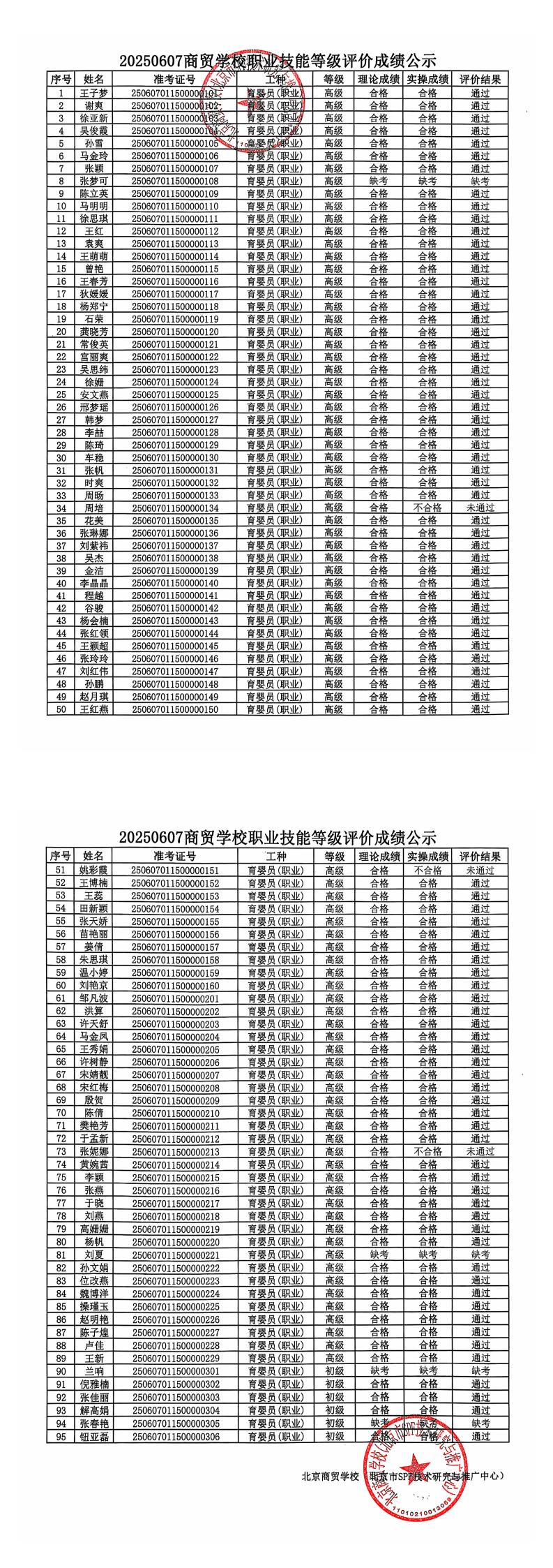 20250621商贸学校职业技能等级评价成绩公示