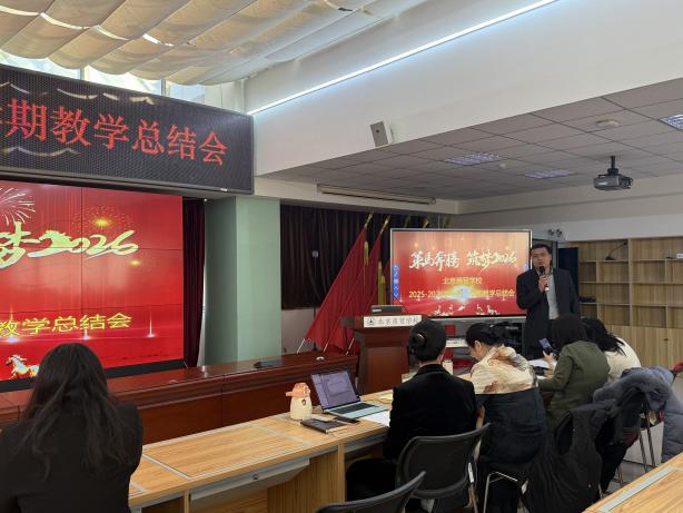 会上,各部门负责人及教师代表依次发言,全面梳理本学期工作亮点、深刻提炼实践经验。基础教学部主任孔华、传媒服务专业部主任徐少阳、食品商务专业部主任敖海英、教研督导室(职业教育研究中心)主任苗冰、教务处(科技信息部)主任王宇、财经事务专业部教师姚远,分别就各部门本学期的主要亮点工作和成效进行总结。