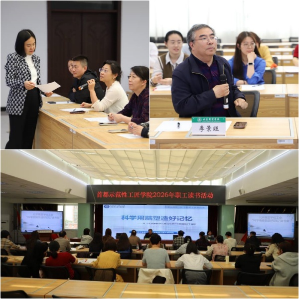 为深入推进首都示范性工匠学院建设,丰富教职工精神文化生活,助力大家掌握科学高效的学习记忆方法,以更优状态投入工作与生活,4月24日,北京商贸学校成功举办“科学用脑塑造好记忆”主题读书分享活动。学校领导、中层干部、教职工代表30余人参加,学校党委副书记、纪委书记、工会主席李景旺主持并讲话。他强调,学校始终将教职工全面发展放在重要位置,持续搭建优质平台、创造有利条件,丰富教职工精神文化生活。此次读书活动精准对接教职工职场发展与身心养护需求,是大家自我提升的重要契机。
